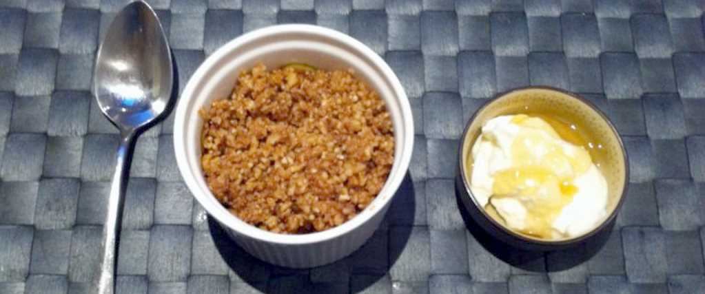 Read MoreIf you need to whip together a quick, easy but impressive dessert in very little time then this Apple Crumble is the perfect recipe. It’s also really healthy so you won’t feel sick or guilty after it. Serves 2 Ingredients 2 apples 4 tsp cinnamon 2 tbsp Maple Syrup or your choice of sweetener 3/4 cup walnuts (almonds, cashews…